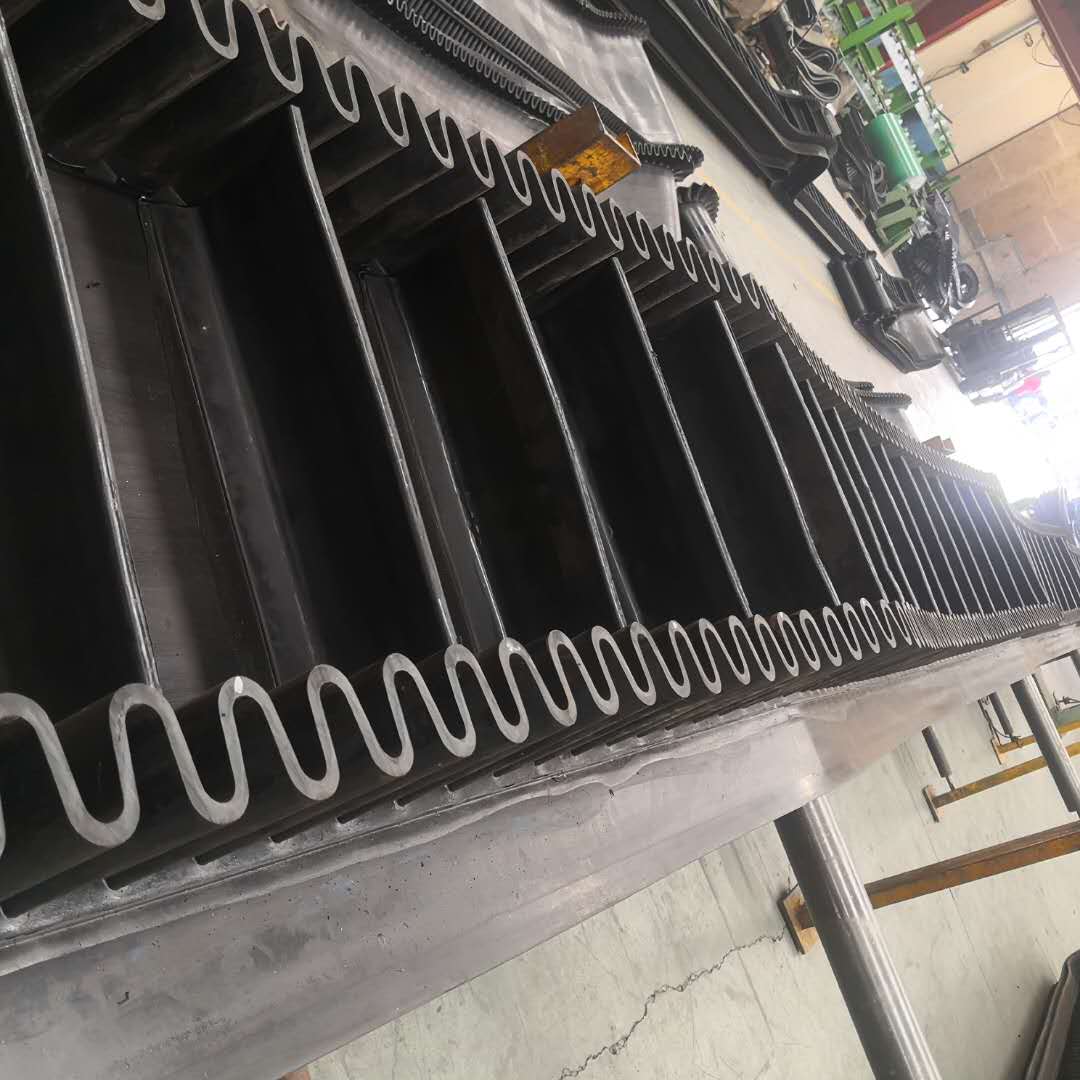 其特点:适用于倾角0°~90°散装物料的输送;具有使用范围广、占地面积小、无转运点、减少土建、维护费用低、维修容易输送量大连续化、高效率、大倾角运输,操作安全,使用简便,,运费低廉,并能缩短运输距离,降低工程造价,节省人力物力等特点;解决了普通带和花纹带所不能达到的输送角度;还可根据使用环境,设计成完整、独立的输送系统,避免了间断输送和复杂输送的提升系统。可沿水平、倾斜、垂直和变角方向输送各种散装物料,从煤、矿石、沙子到化肥和粮食等。物料粒度不限,可从很小的粒度到400mm的大粒度,输送量可从1立方米/小时到6000立方米/小时。